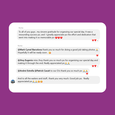 With many LEGIT HAPPY CLIENTS! Weekly Events na pwede mong i-visit! May physical office na pwede mong puntahan! Business documents! and well-trained team to handle your special moment!